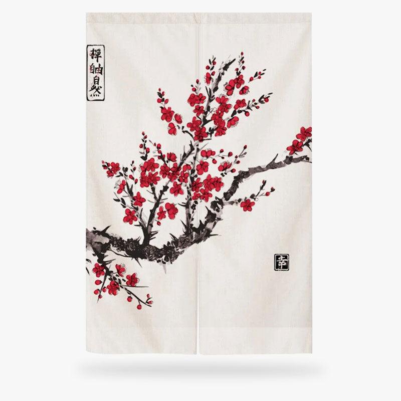 The minimalist ink-style branch and kanji motif pairs beautifully with natural woods, tatami tones, and modern Japandi spaces. Use it to frame a kitchen pass-through, hide open storage, or dress a hallway without blocking airflow. The center slit lets you pass through easily, and the fabric drapes cleanly for an elegant everyday look.